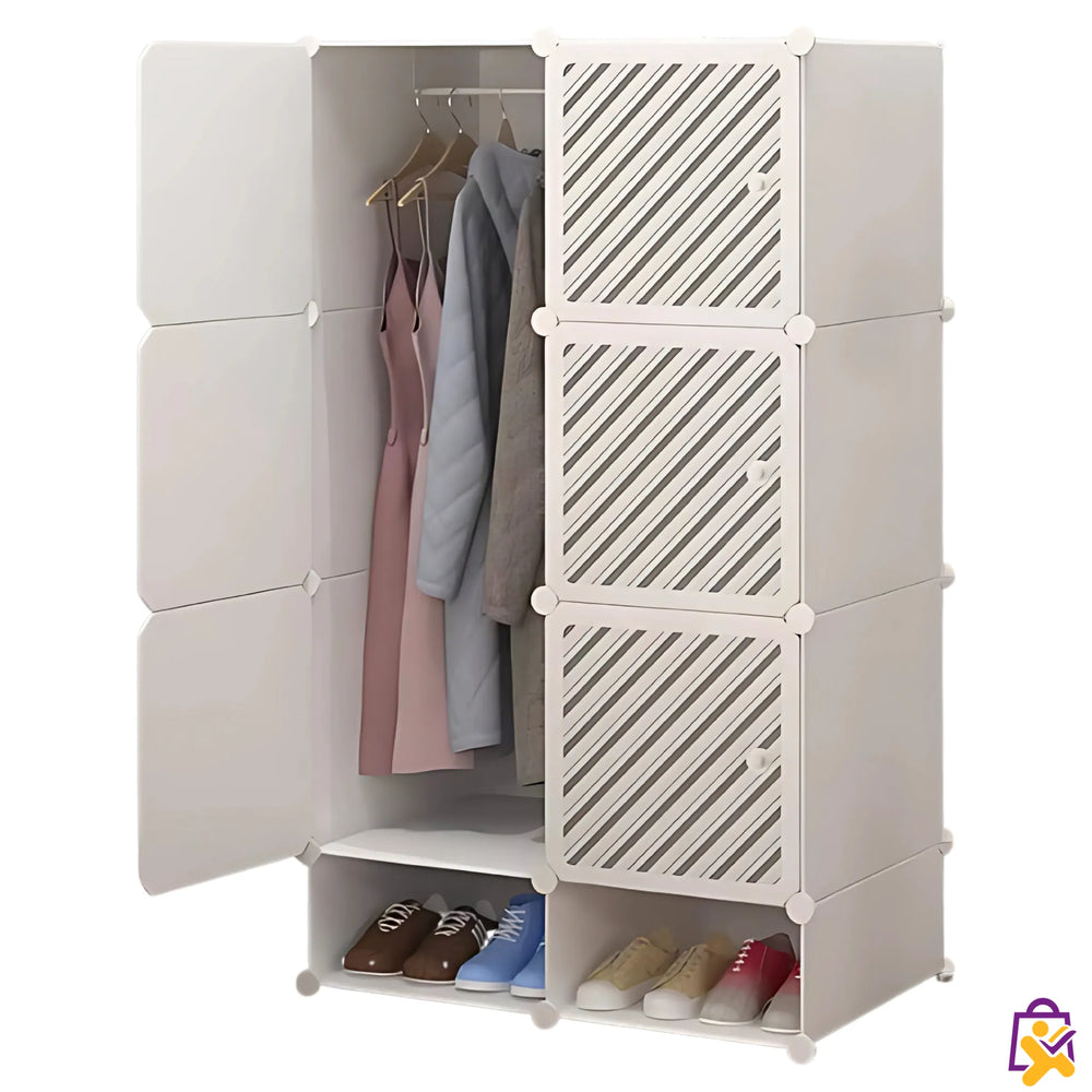 Organizador Guarda Roupa Modular Portatil Branco Fosco Cabideiro e Sapatos Ajustável